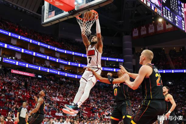 本场比赛中,由于火箭进行了大面积的人员轮换,侧翼新星卡姆-惠特莫尔(Cam Whitmore)不仅进入了先发阵容,而且还得到了大量的出场时间。惠特莫尔全场出场31分51秒,投篮12中6,三分线外4中1,罚球2中1,得到了14分5篮板2助攻的数据,还有1次失误和1次犯规,正负值为-15。惠特莫尔在比赛中也是将自己在身体天赋和运动能力方面的优势发挥得淋漓尽致,他的冲击力和爆发力非常惊人,他能够对对手内线制造大量的威胁,他也具备一定的外线投射能力,他也是一名相当不错的得分手。不过惠特莫尔在防守端的表现还是稍微差了一些,他缺乏足够的防守能力,他在防守专注度方面也存在着一定的问题。